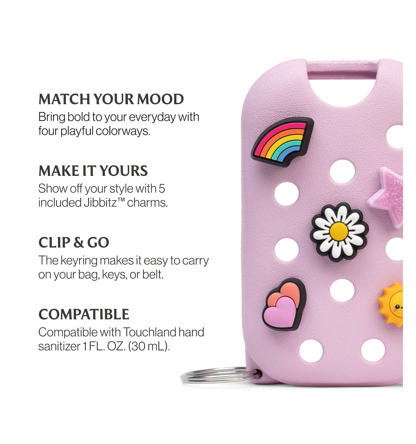 Cada case incluye 5 dijes Jibbitz™ y un llavero.