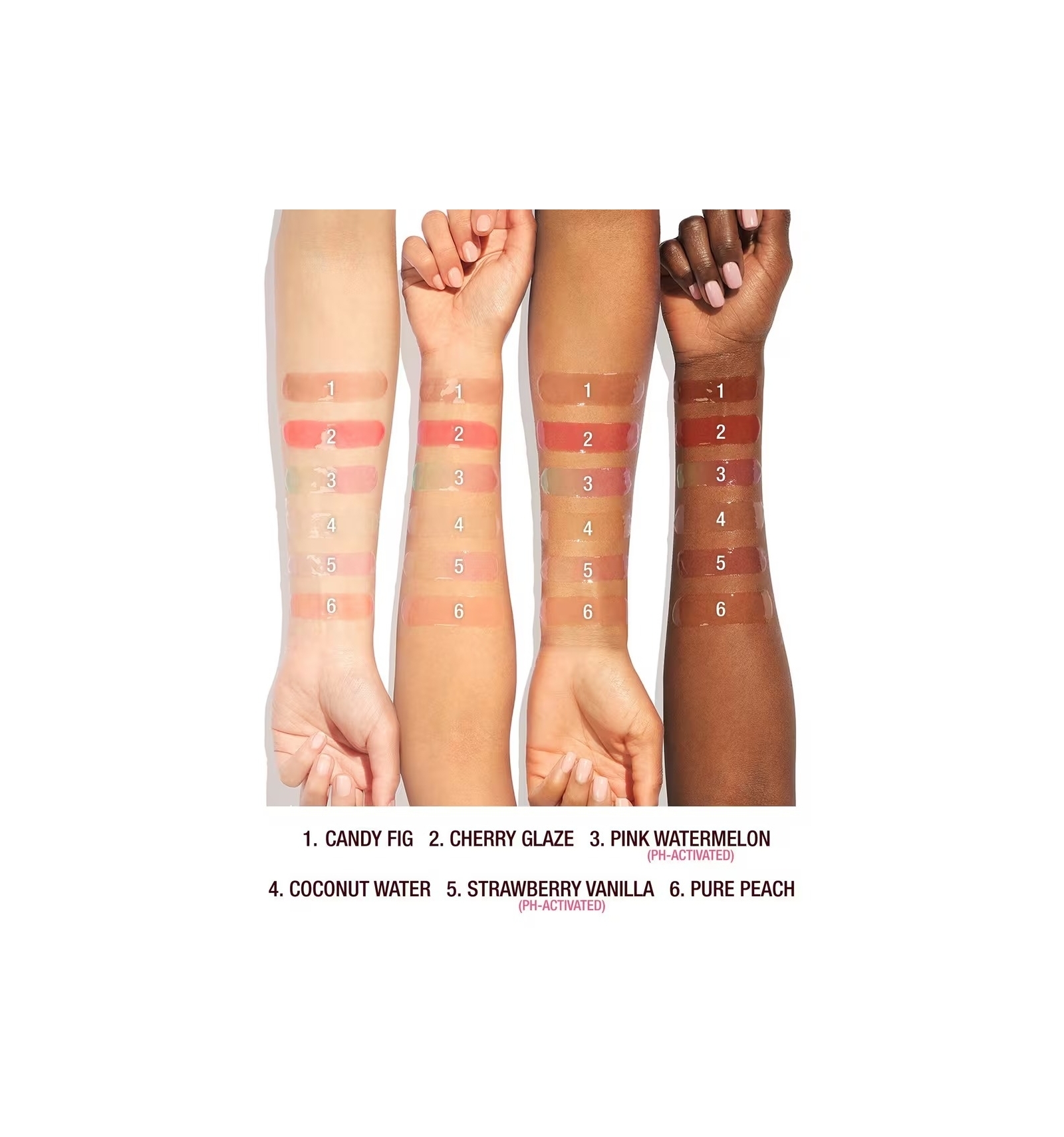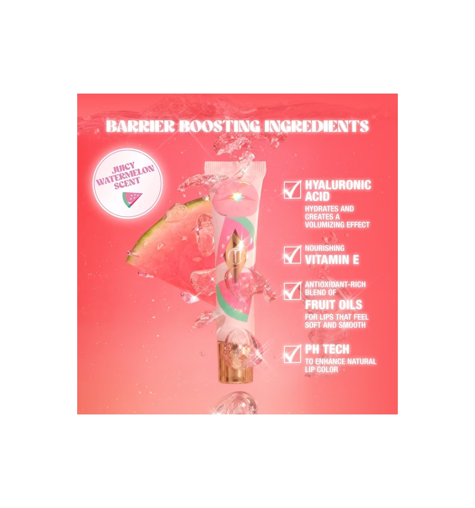 - pH colour-changing pink lip oil with a juicy watermelon scent.