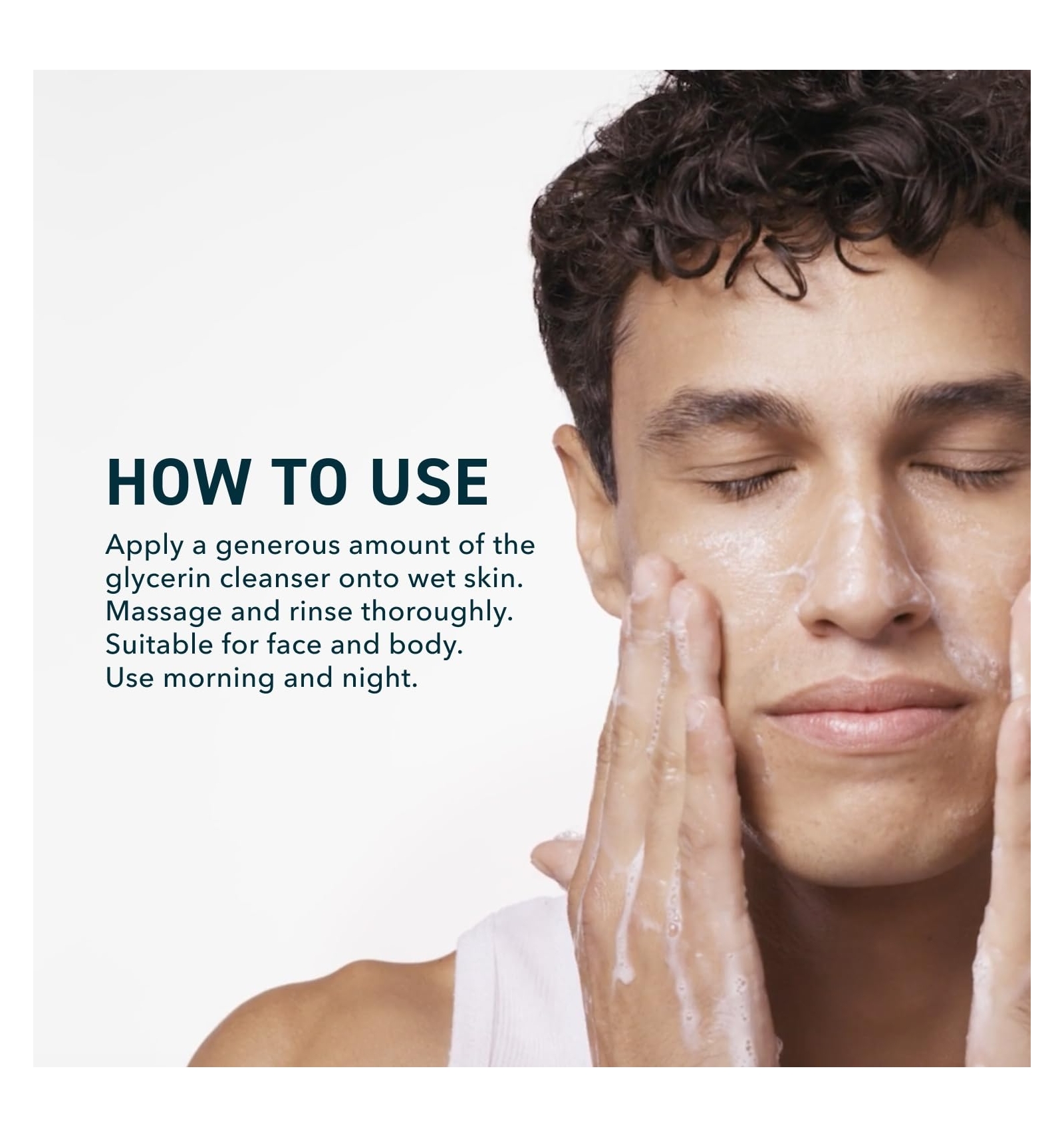- Aplica sobre piel húmeda, masajea suavemente y enjuaga. Puede usarse dos veces al día, también en el cuerpo.