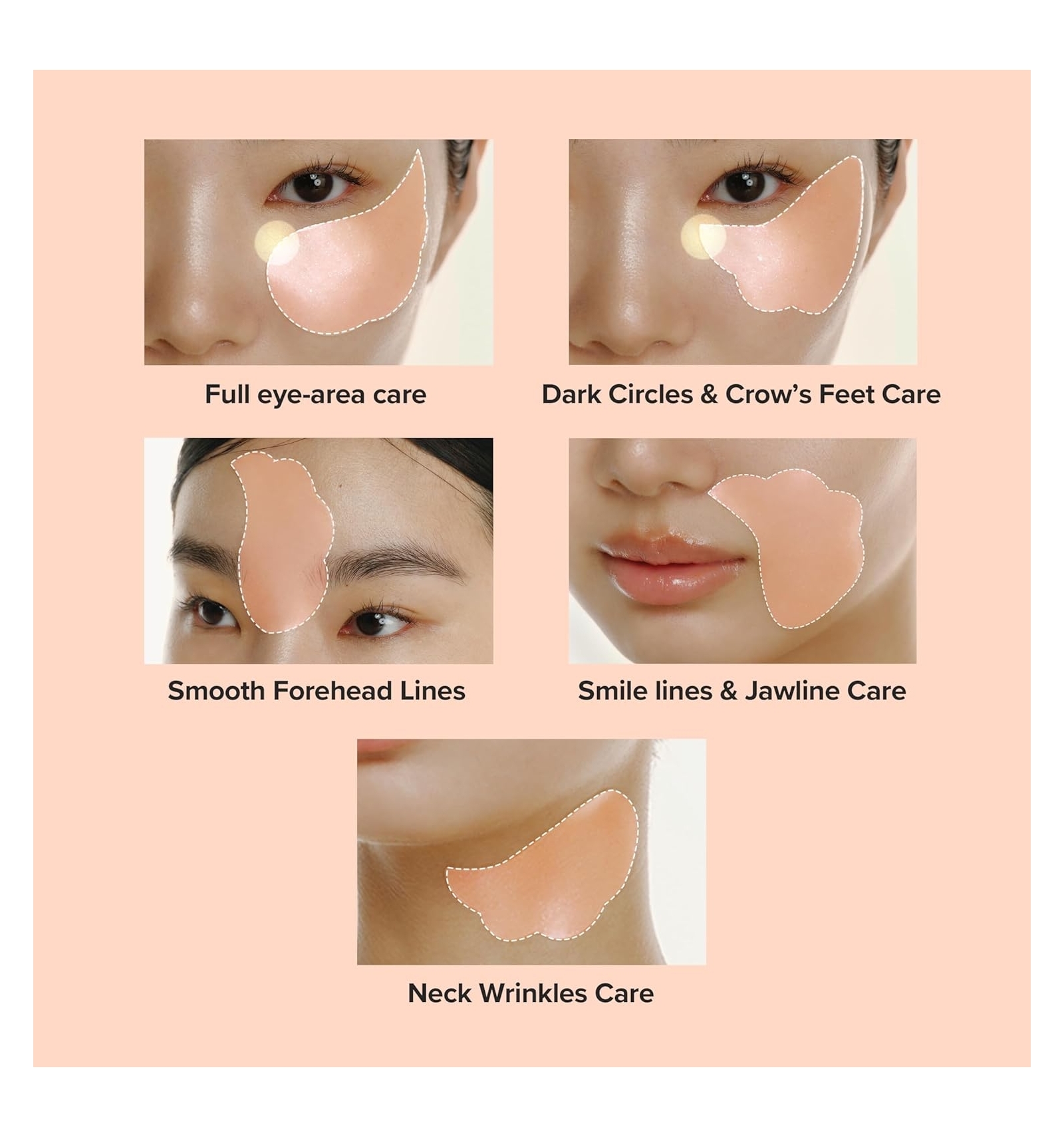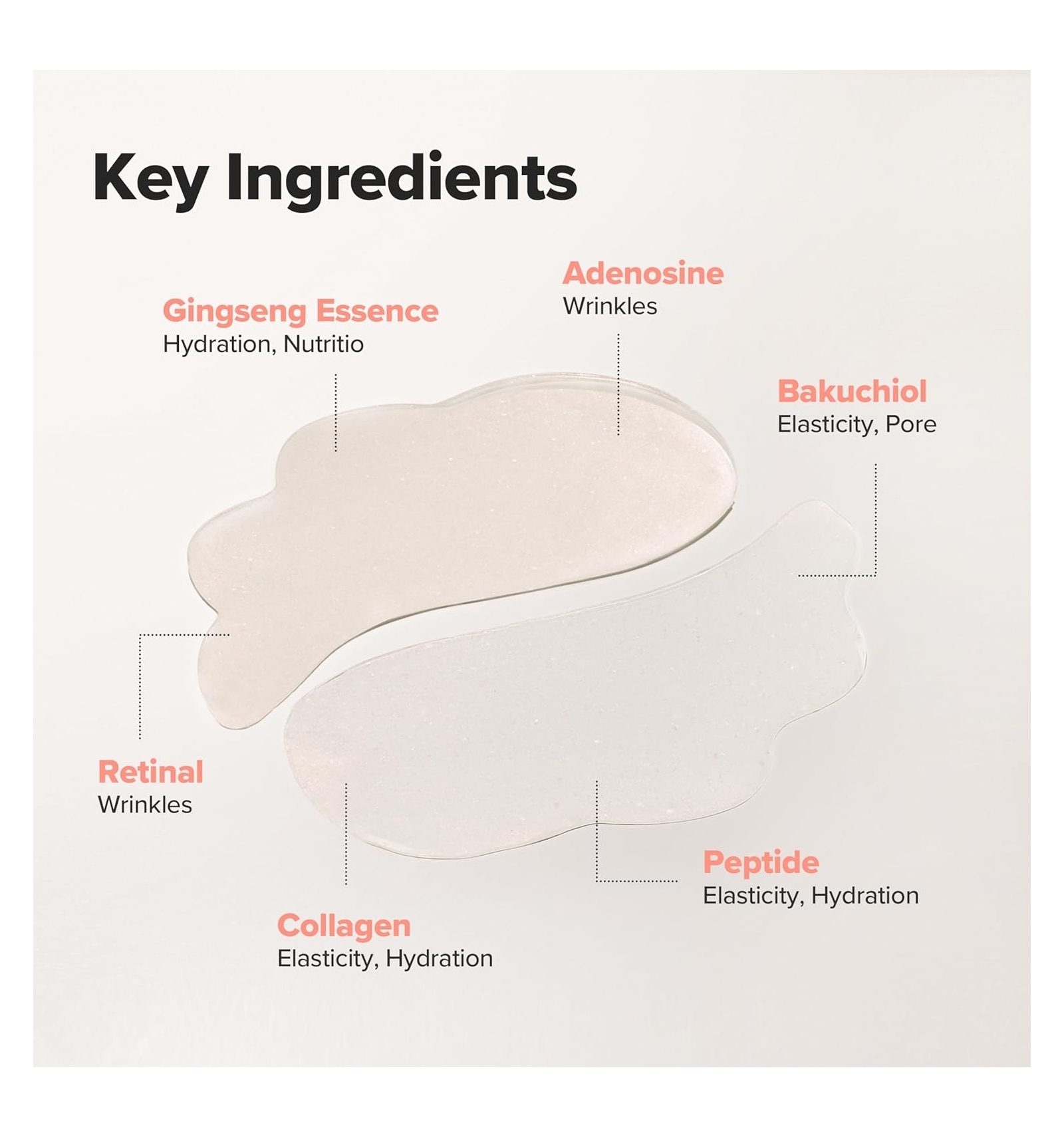Parches de hidrogel enriquecido con agua de ginseng y retinal que aporta hidratación intensa, firmeza y luminosidad al contorno de ojos. Su diseño “sin-slip” se adhiere cómodamente y libera ingredientes activos para reducir arrugas, ojeras y bolsas, dejando la mirada más despierta y renovada.