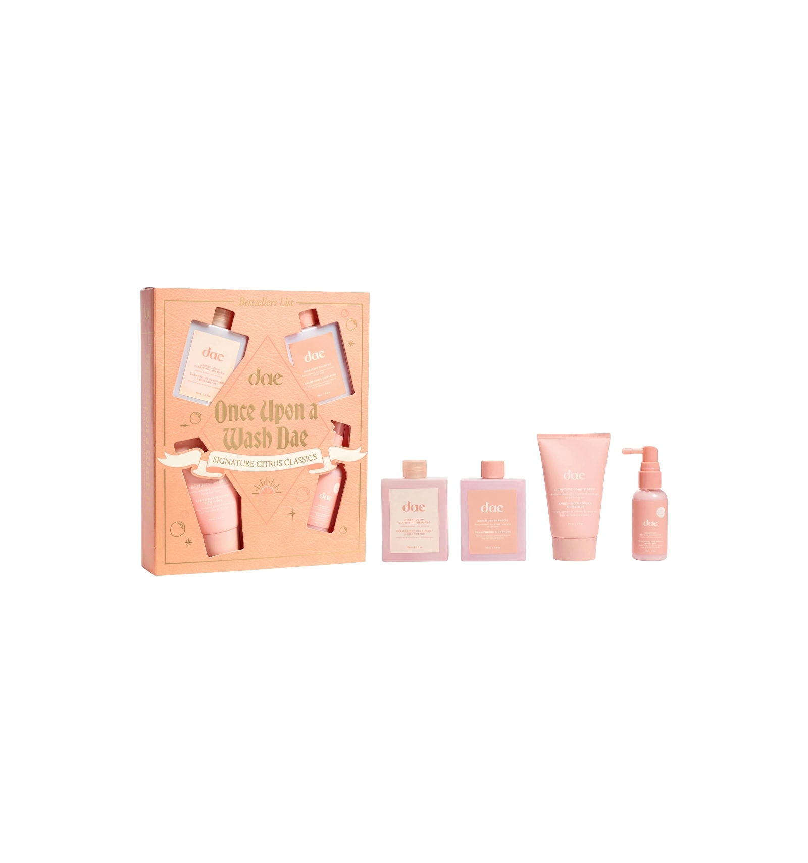 Un set capilar de edición limitada que transforma tu rutina de lavado en un ritual sensorial. Incluye productos esenciales en miniatura con la fragancia cítrica característica de Dae, ideales para mantener tu cabello limpio, hidratado y libre de frizz.